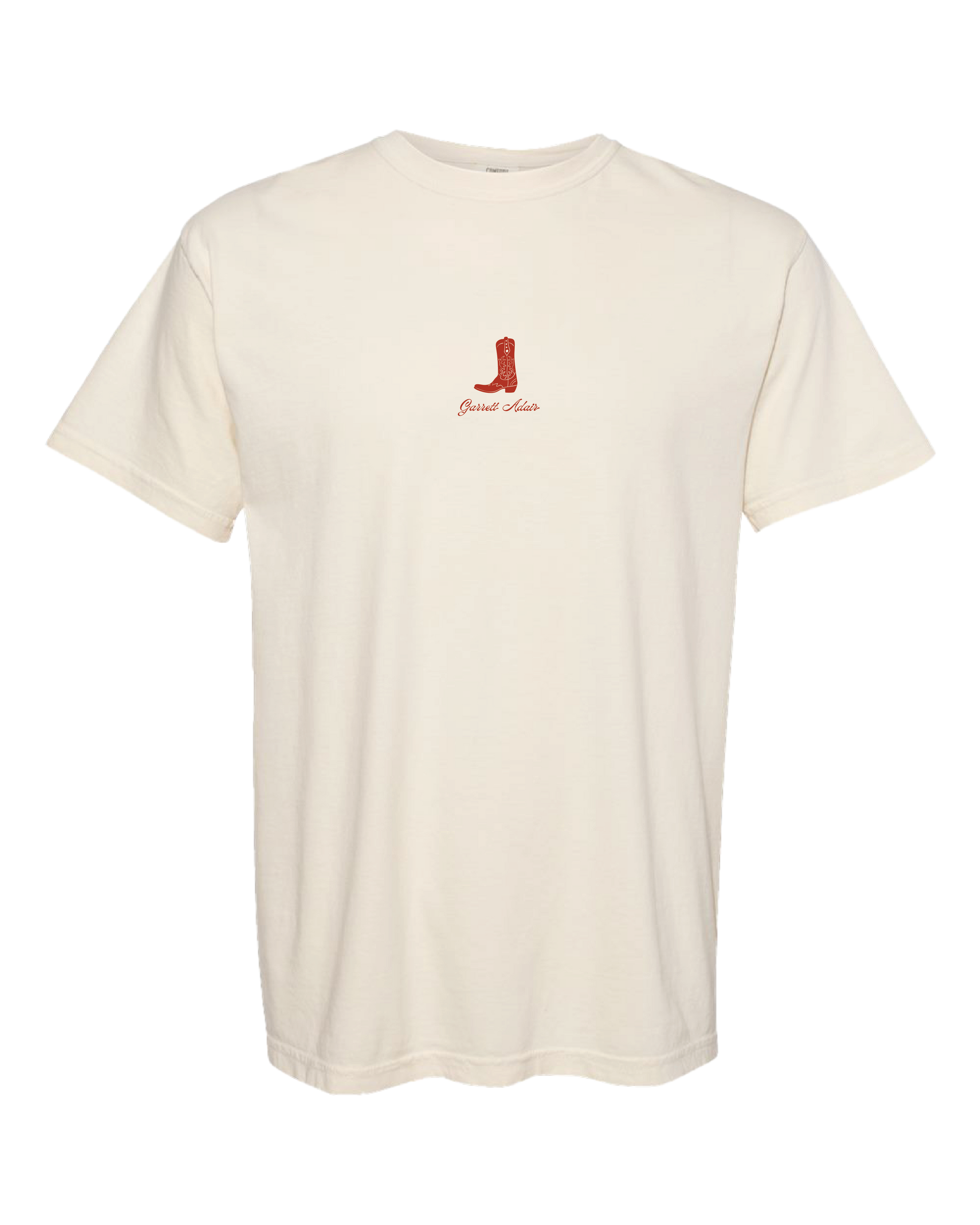 Whether you’re heading to a show, kicking back at home, or styling it with your favorite denim, the “Red Boots” tee is a must-have for any Garrett Adair fan.